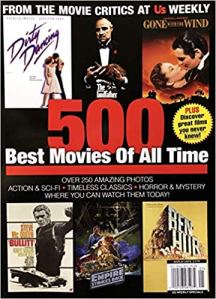 A while back, I fell to the temptation of the grocery store magazine stand and bought 500 Best Movies of All Time, a money-grabber put out by Us Weekly. I thought it would be a ranking of 500 movies, and I would be able to list the ones that I have seen. Instead, they broke it down by category and added a bunch that almost made the list.
